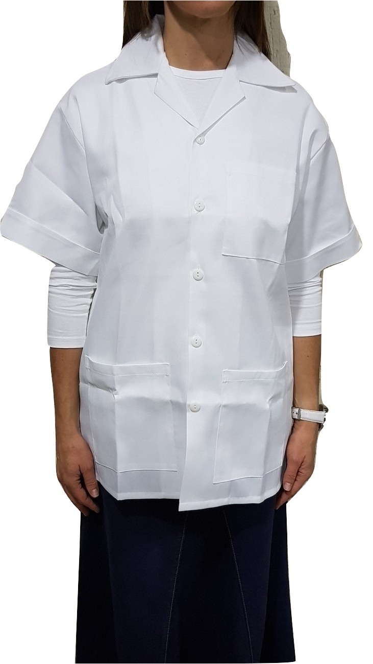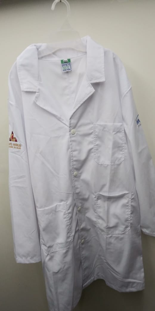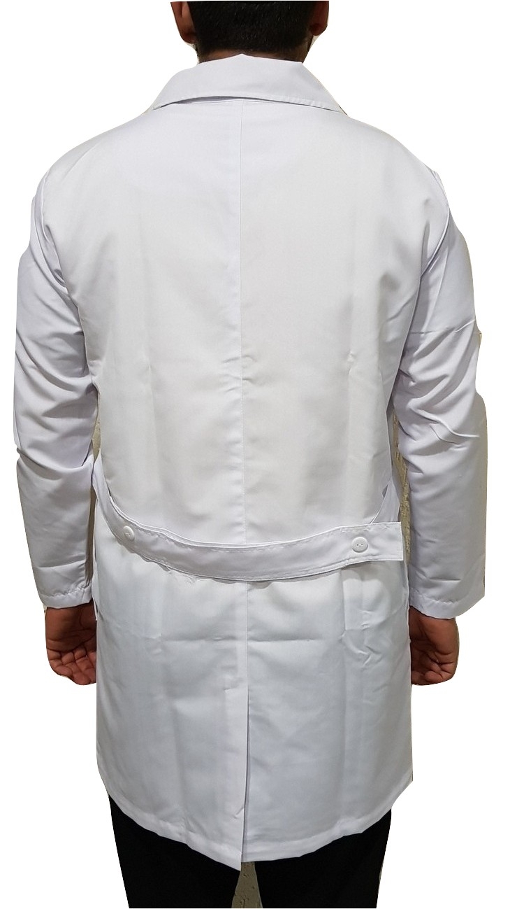 Descripcion: Bata de medico e industrial corte largo (abajo de la rodilla), manga larga