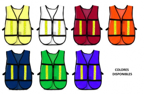 Fabricado en maya poliéster fluorescente, con elásticos laterales y cierre del velcro al frente.