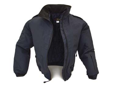 | CHMT 1802 | Chamarra est. 83, confeccionada en nylon pvc, forro capitonado, pretina, puños pretina de poliester corta. Color: Negro y azul marino |